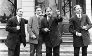 Le baron Philippe de Rothschild prit en main les destinées de Château Mouton Rothschild en 1922, à l’âge de 20 ans, et le millésime 1924 fut un triomphe pour le domaine, célébré comme il convient par l’affichiste Jean Carlu (1900-1997), et par l’annonce faite au monde que le vin serait désormais intégralement mis en bouteille au Château. Une véritable révolution par rapport aux pratiques courantes. L’étiquette de Château Mouton Rothschild 1924 reste un des exemples les plus réussis de l’influence du cubisme dans le domaine des arts appliqués.
